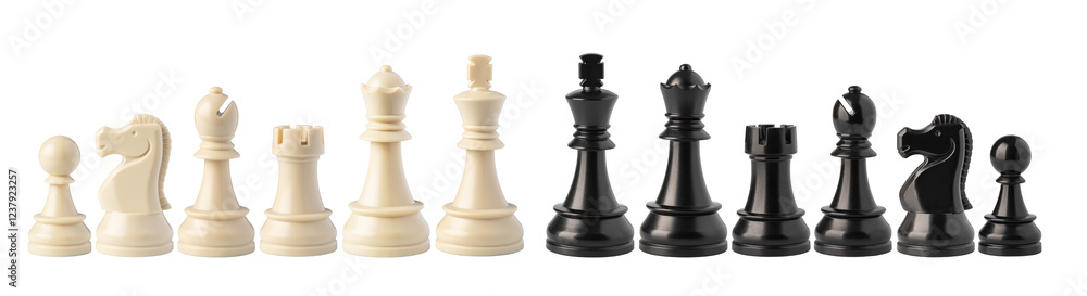 Tableau sur toile Black and white chess pieces floating on transparent background