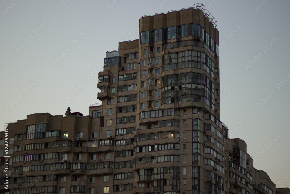 Tableau sur toile Soviet panel houses near the river, brutalist architecture
