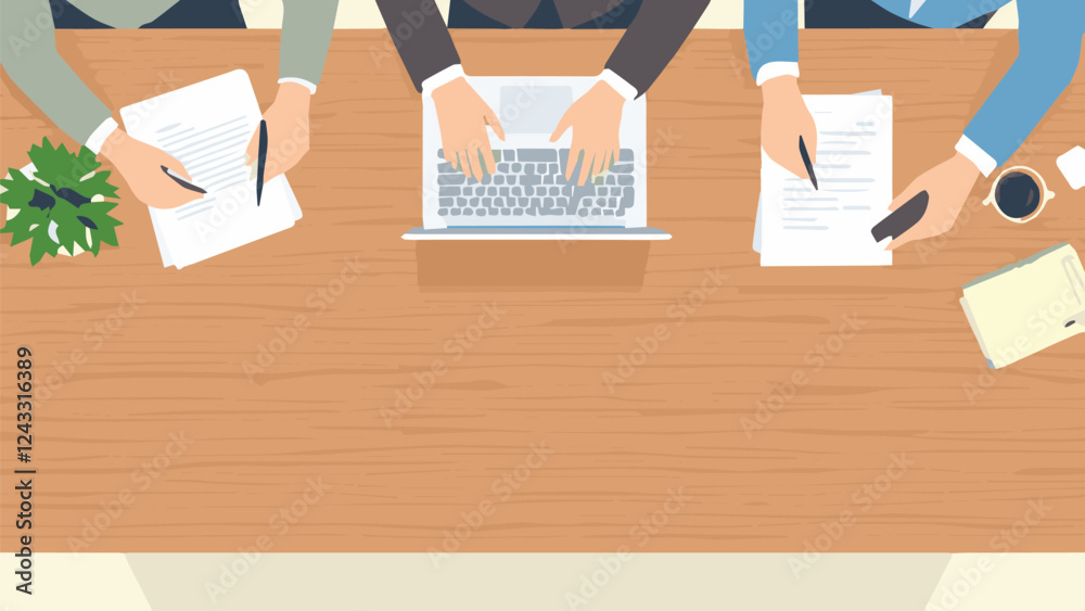 Tableau sur toile hands on laptop, business work, topview vector illustration