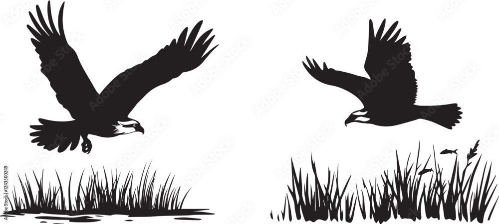 Tableau sur toile Silhouette of an osprey in flight vector silhouette
