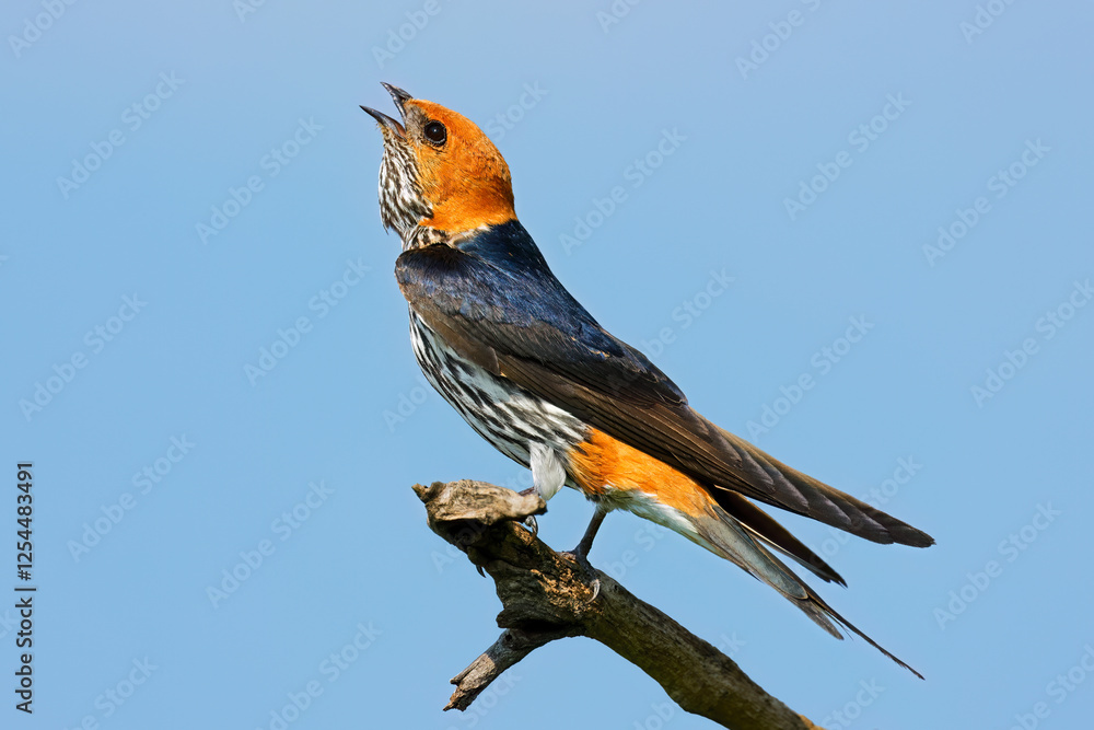 Tableau sur toile A lesser striped swallow (Cecropis abyssinica) perched on a branch, South Africa