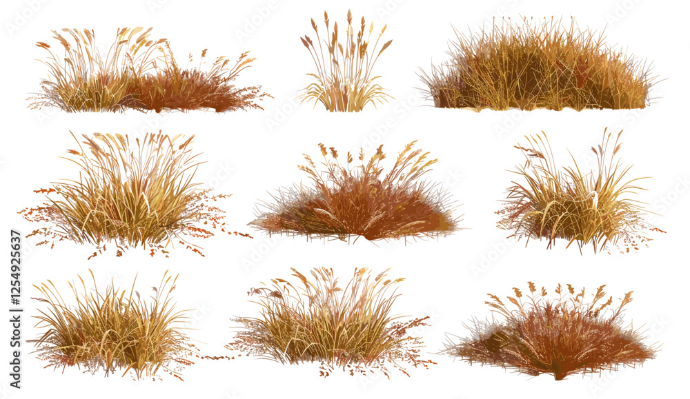 Tableau sur toile vector illustration dried grass cutout, savanna field, meadows set, transparent