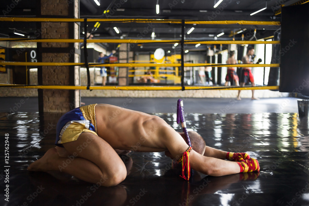 Tableau sur toile Fighter Muay Thai bowed in the ring