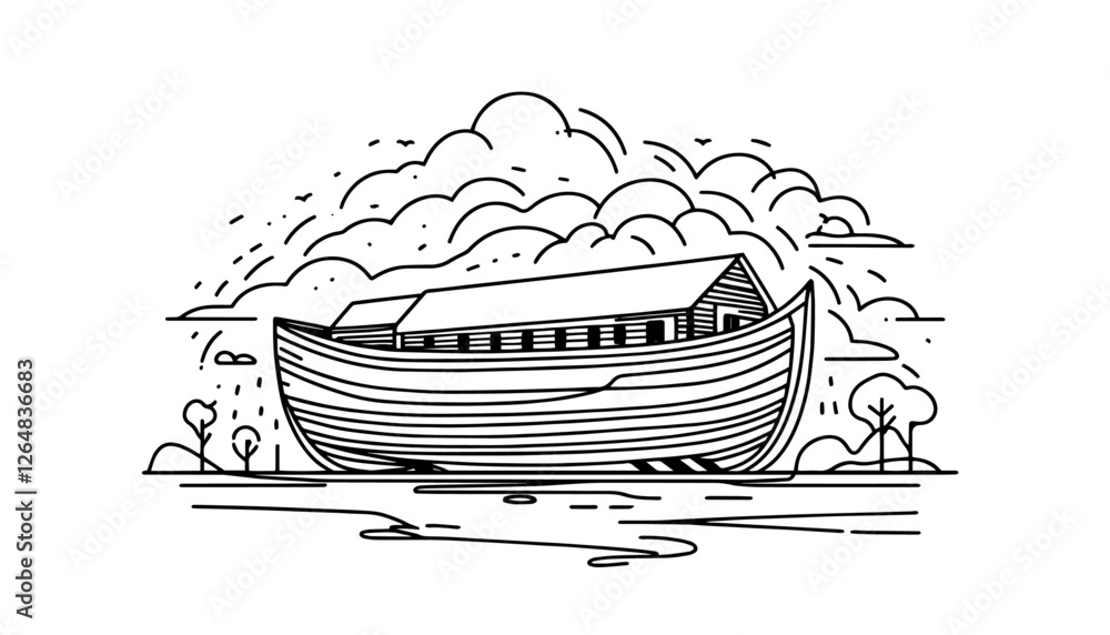 Tableau sur toile noah's ark with clouds in stylized black and white drawing lineart