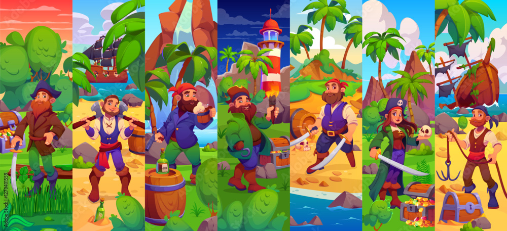 Tableau sur toile Cartoon pirate characters collage featuring maritime narrative with adventurous