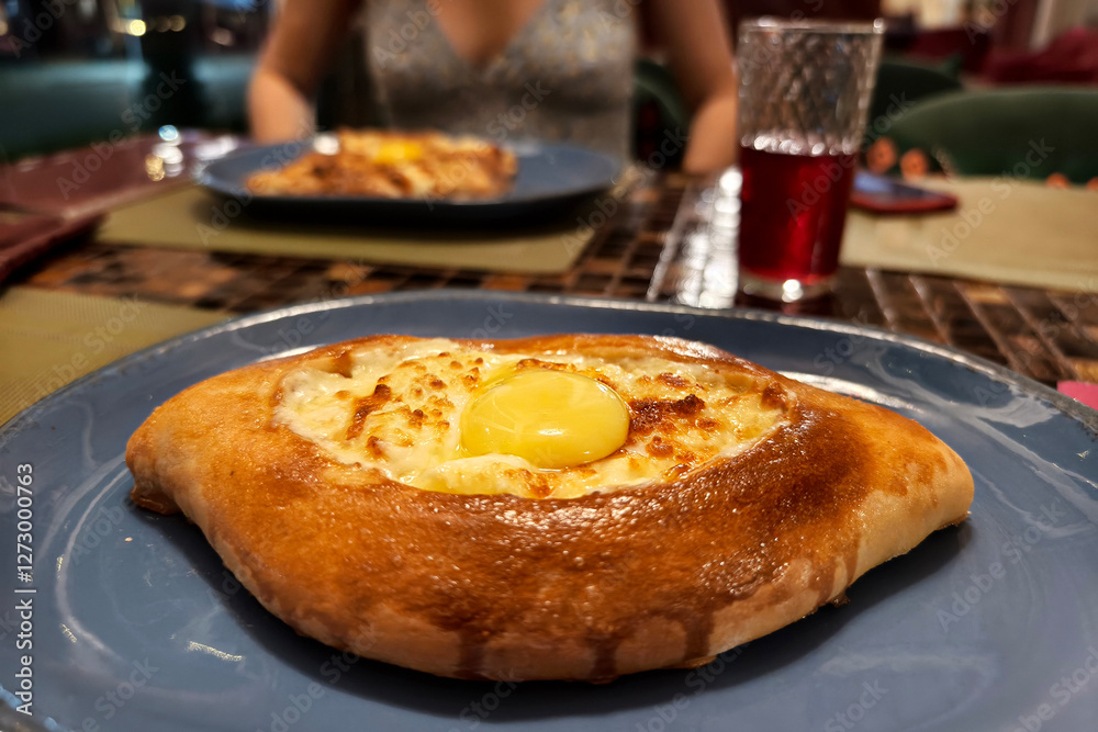 Tableau sur toile Traditional Georgian bread - khachapuri madjarski with cooker hand