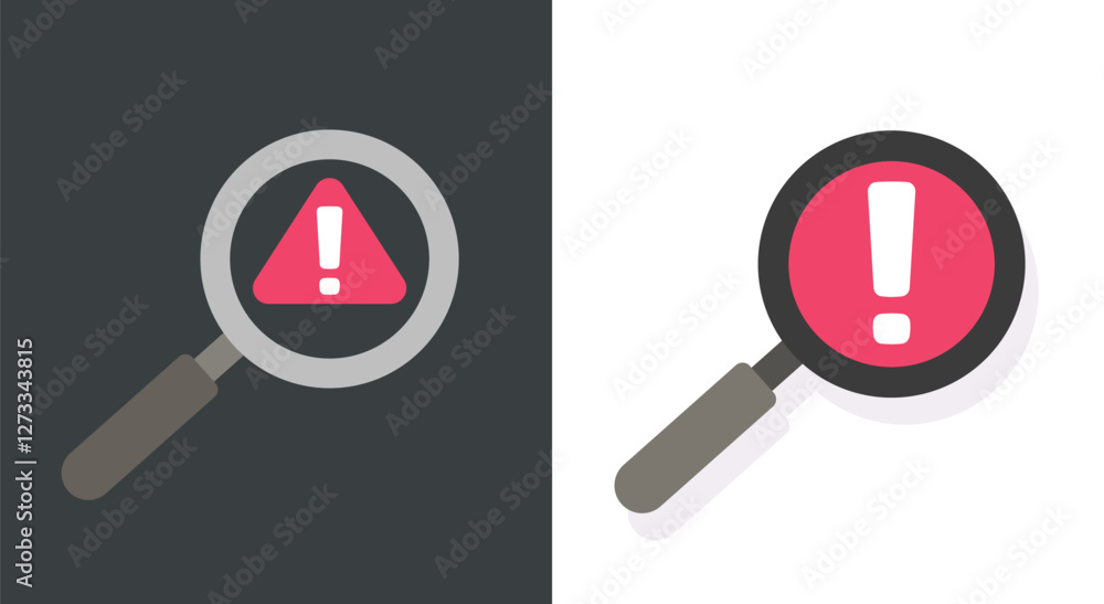 Tableau sur toile Magnifier glass identify scam alert caution icon vector graphic set, flat cartoo