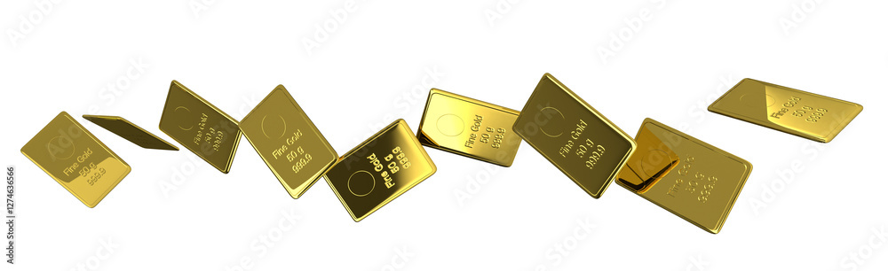 Tableau sur toile gold bullion bars falling, 50 g gold bars 3d illustration