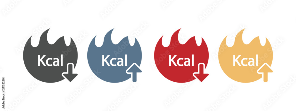 Tableau sur toile Energy fat burn kcal fire icon set isolated on white