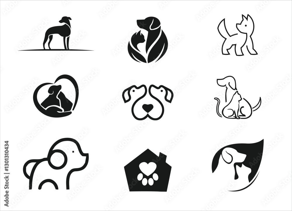 Tableau sur toile dogs cat pets care logo design