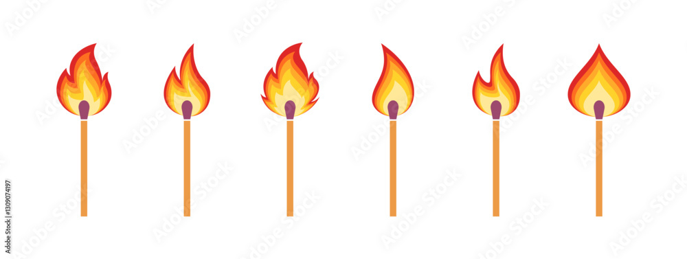 Tableau sur toile Illustration of six burning matches with vibrant flames in progression