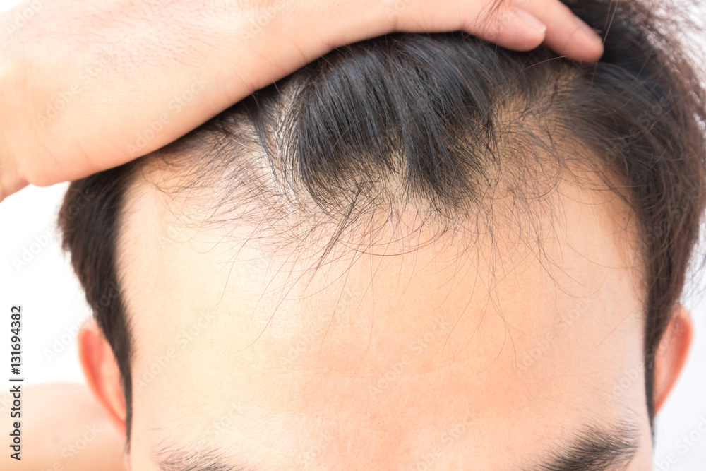 Tableau sur toile Young man worry hair loss problem for health care shampoo and be