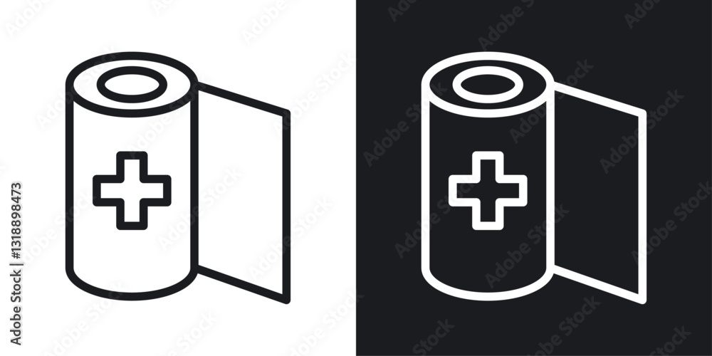 Tableau sur toile Sterile gauze icons set in black and white stroke lines
