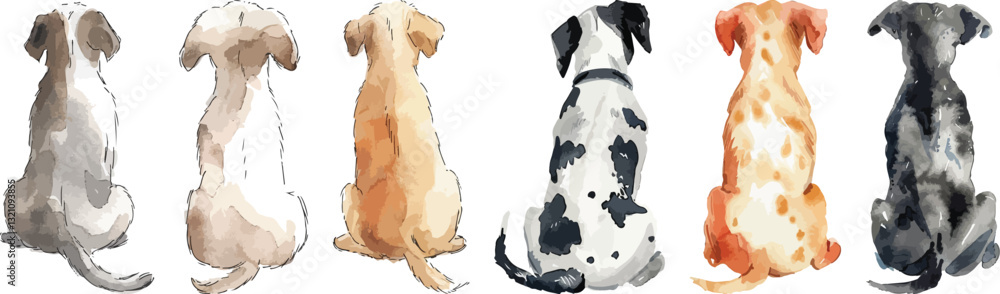 Tableau sur toile Dog Breeds Sitting Back View Watercolor Vector Illustration