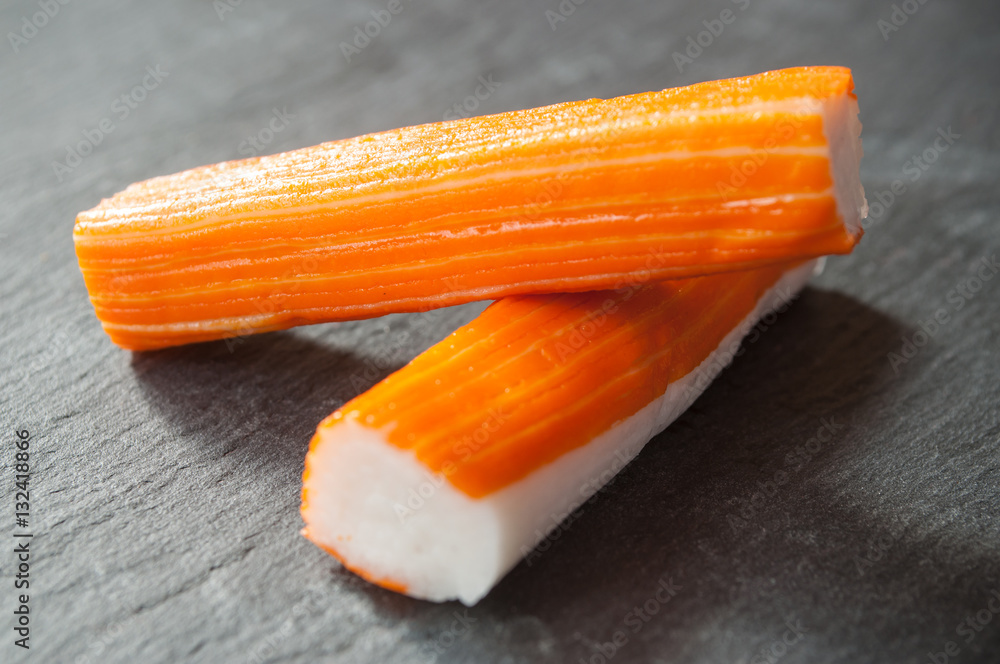 Tableau sur toile bâtonnets de surimi sur ardoise