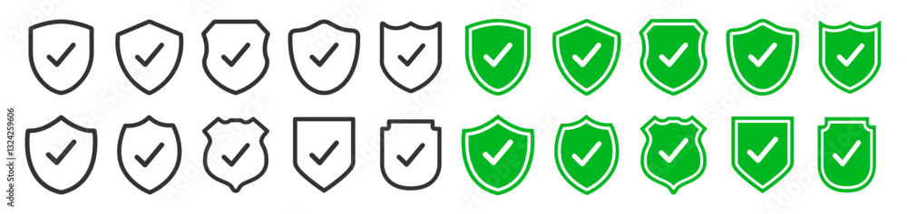 Tableau sur toile Set of security shield icons, security shields logotypes with check mark and padlock isolated on transparent