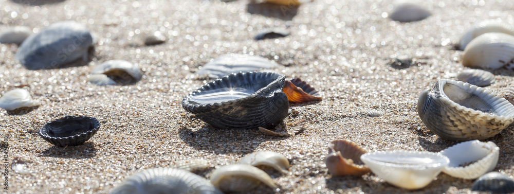 Tableau sur toile cockleshells on sand of the Sea of Azov