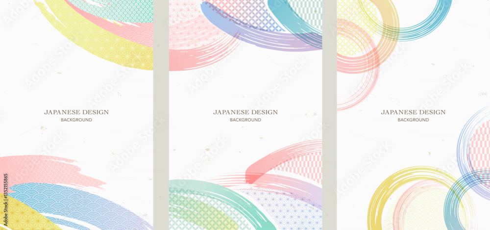 Tableau sur toile 筆と和柄の背景デザインコレクション