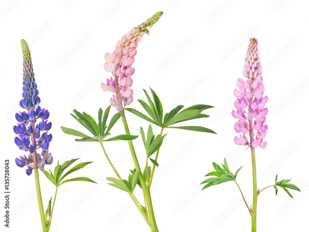 Tableau sur toile set of lupine three flowers isolated on white