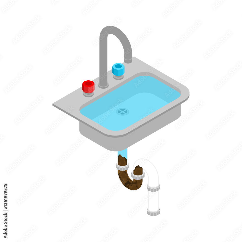 Tableau sur toile Clogged sink. Water standing in sink. Dirt in drain.