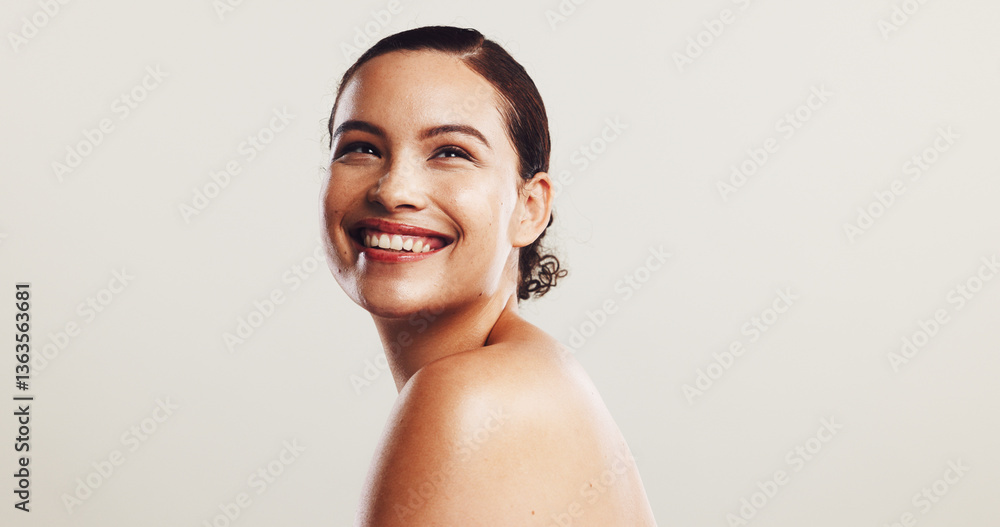 Tableau sur toile Skincare, beauty and woman in studio with hydration, collagen and natural facial routine