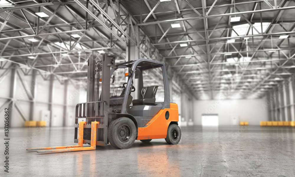 Tableau sur toile Concept of warehouse. The forklift in the empty big warehouse on