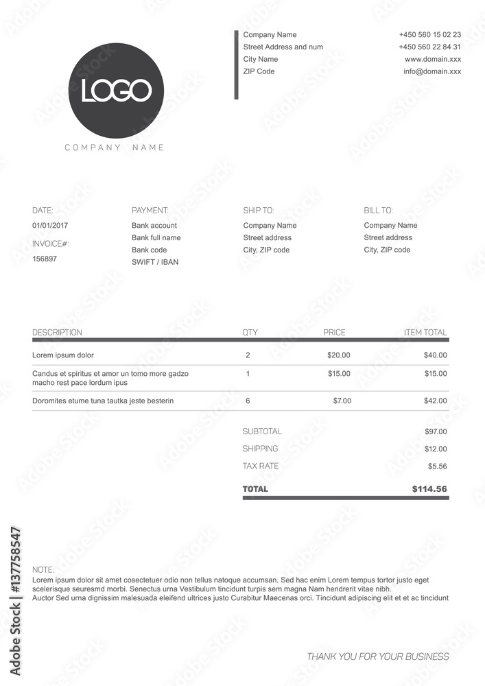 Tableau sur toile Black and white simple invoice template