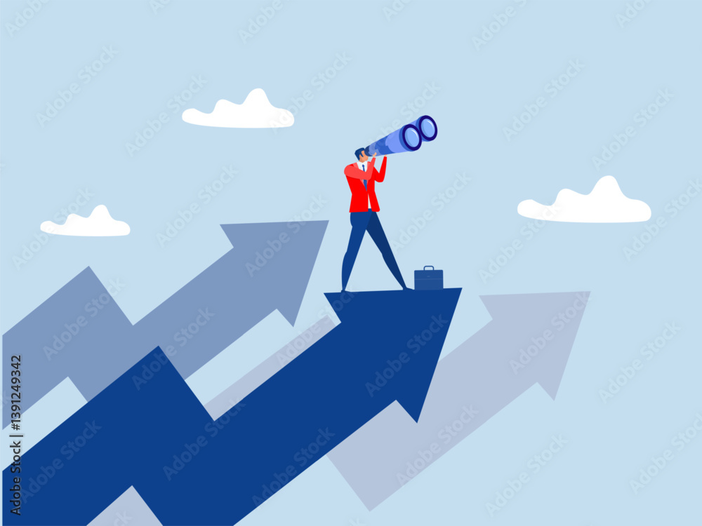 Tableau sur toile Search more opportunities,businessman climb up rising arrow with big telescope s