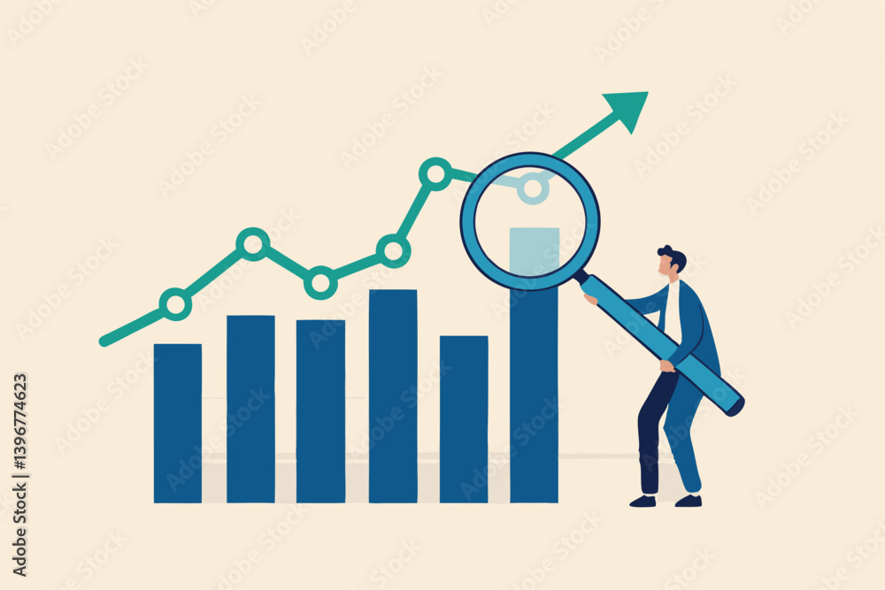 Tableau sur toile Trend analysis, marketing and sales information, analyze or predict trend line or profit, business forecast report concept, businessman analyst analyze trend graph and chart with magnifying glass