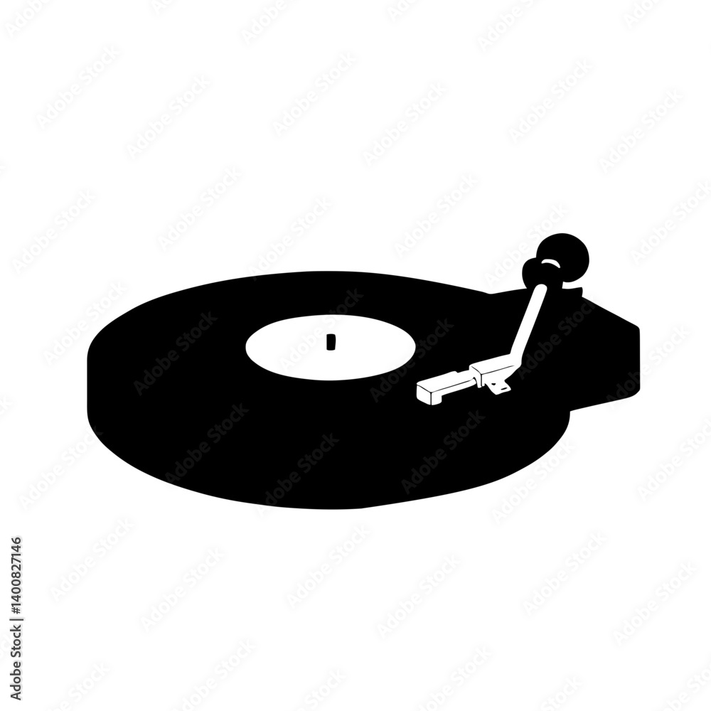 Tableau sur toile Minimalist black silhouette of a vinyl record player with tonearm and spinning d