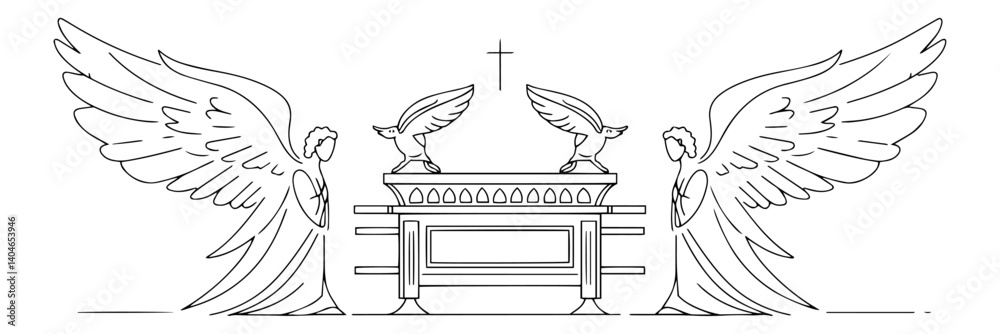 Tableau sur toile ark of the covenant with two angels clean monoline vector illustration with seam