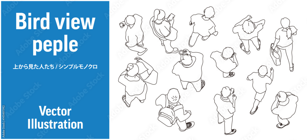 Tableau sur toile 鳥瞰図 上から見た人々 人物アイコン ベクター素材集 (建築/パース/シンプル/モノクロ/編集可能)