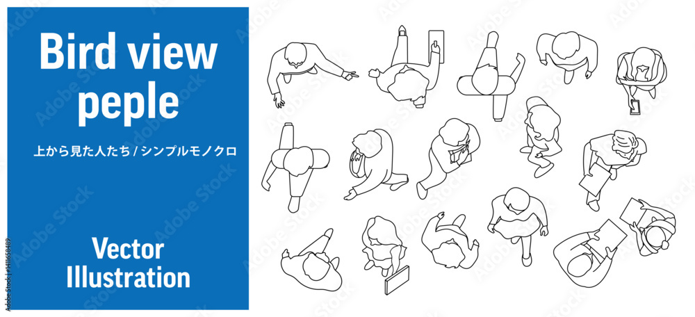Tableau sur toile 鳥瞰図 上から見た ビジネスマン アイコン ベクターイラスト セット (オフィス/仕事/シンプル/モノクロ/編集可能)