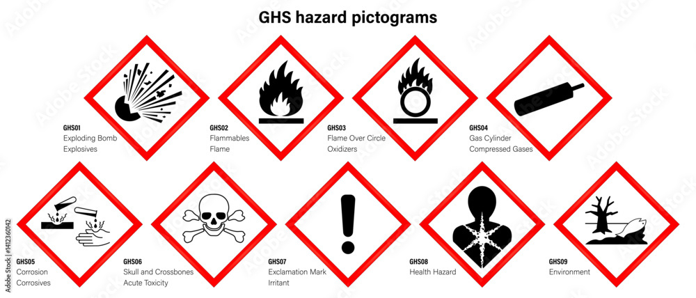 Tableau sur toile Globally harmonized system hazard pictograms