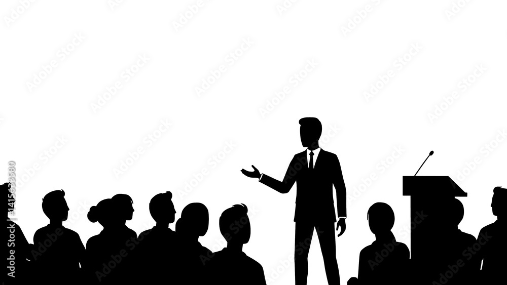 Tableau sur toile Business seminar silhouette with keynote speaker and active audience