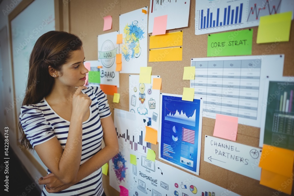 Tableau sur toile Female executive looking at bulletin board