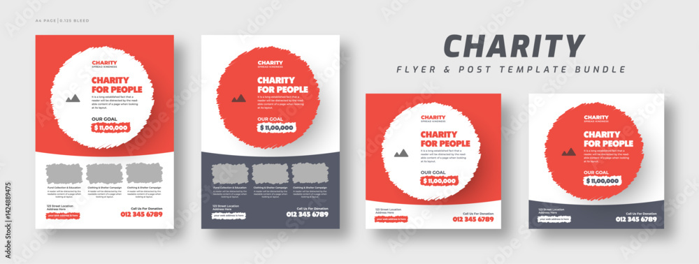 Tableau sur toile Donation charity flyer template and social media post web banner set | Fundraisi