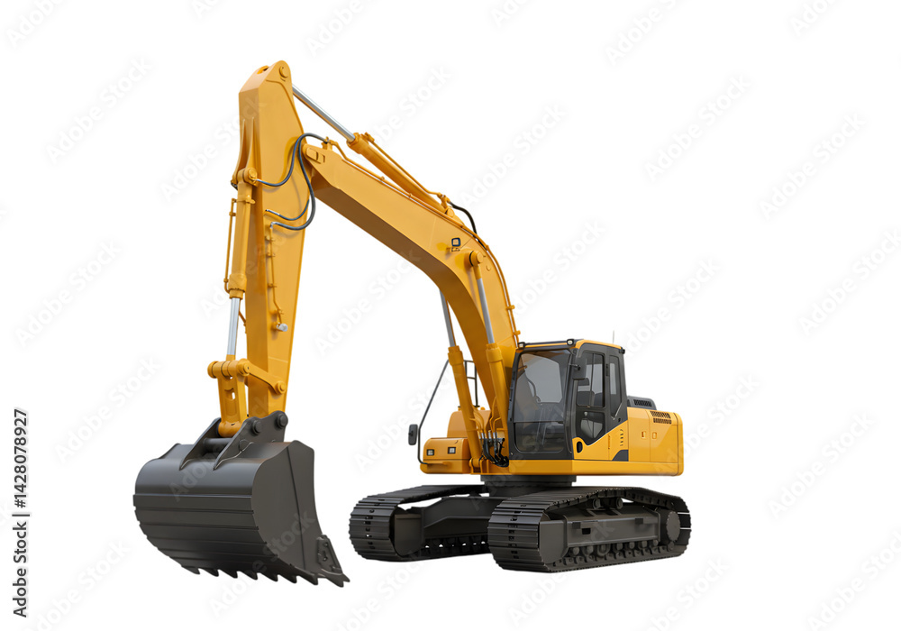 Tableau sur toile Yellow Excavator Heavy Equipment Construction Machinery transparent background