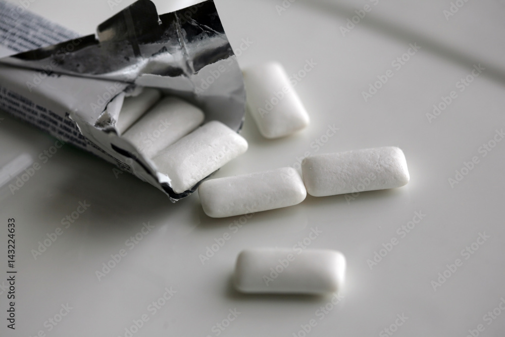 Tableau sur toile Chewing gum and wrapping foil; selective focus.