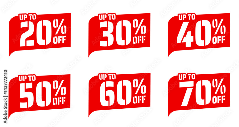 Tableau sur toile Different percent discount red sticker and price tag set, sell off up to 20, 30,