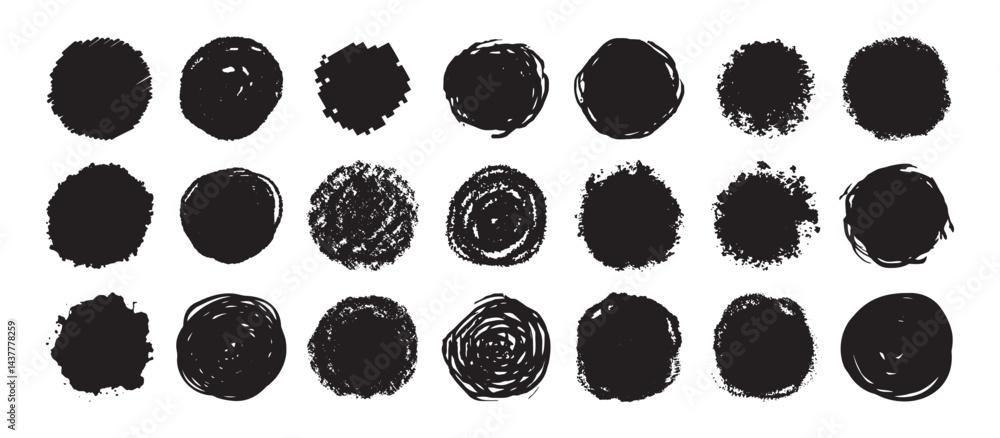 Tableau sur toile Round grunge scratch and textured ink brush strokes set