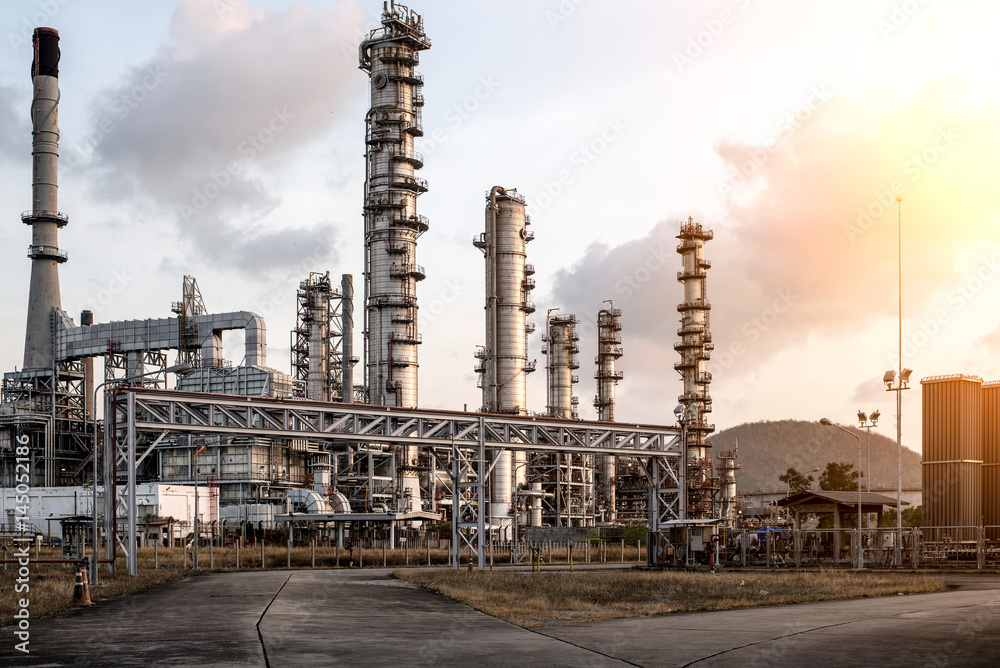Tableau sur toile Oil Industry Refinery factory at Sunset, Petroleum, petrochemical plant