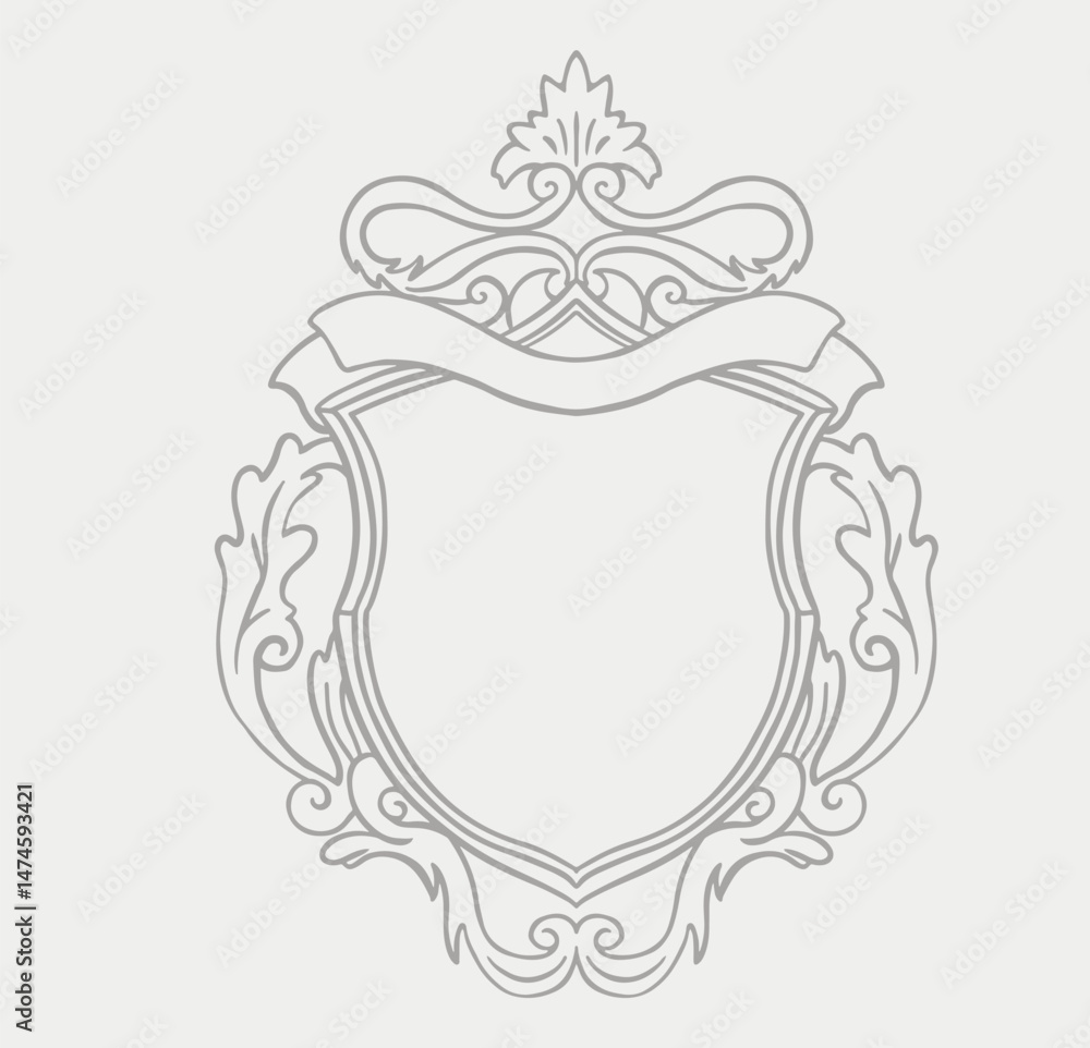 Tableau sur toile Vintage crest banner frame. Heraldic monogram frame with crown.
