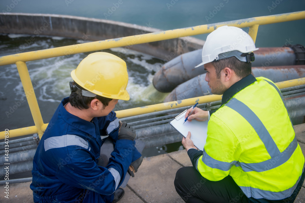 Tableau sur toile An inspector and a water treatment plant engineer are working together to plan a change in the treatment plant's water filter to bring the water up to state standards