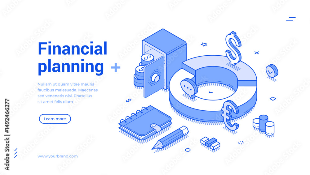 Tableau sur toile Financial planning budget balance calculating accounting web banner isometric vector illustration