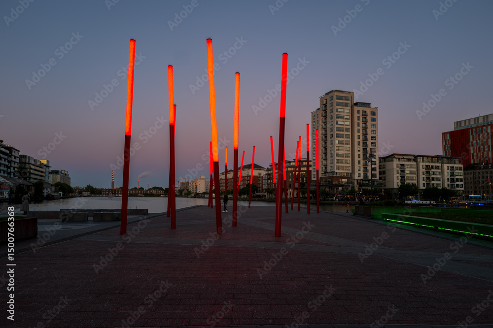 Tableau sur toile Dublin, Ireland - May 8 2025 Sunrise time in Dublin dockland's district