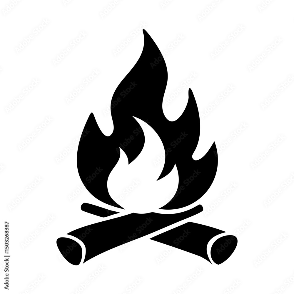 Tableau sur toile Simple icon of a campfire with burning logs and glowing flames
