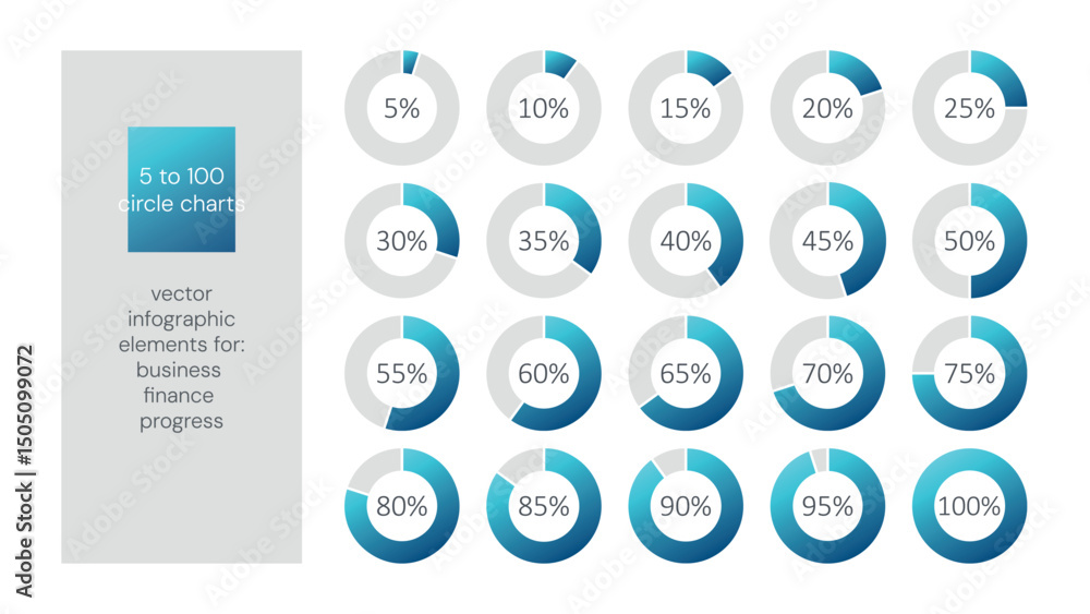 Tableau sur toile 5 10 15 20 25 30 33 35 40 45 50 55 60 65 70 75 80 85 90 95 100 percent pie charts