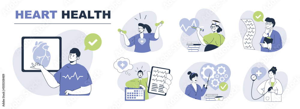 Tableau sur toile Heart health concept set for web design