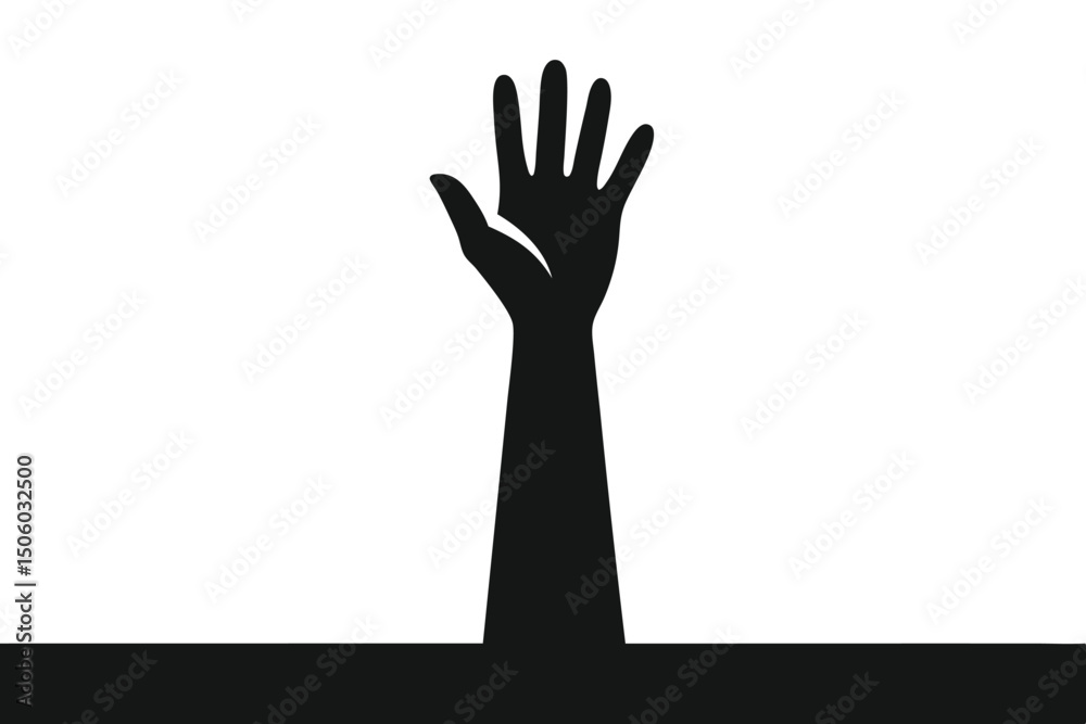 Tableau sur toile high contrast silhouette, arm reaching up, minimalist, dramatic lighting, dark b